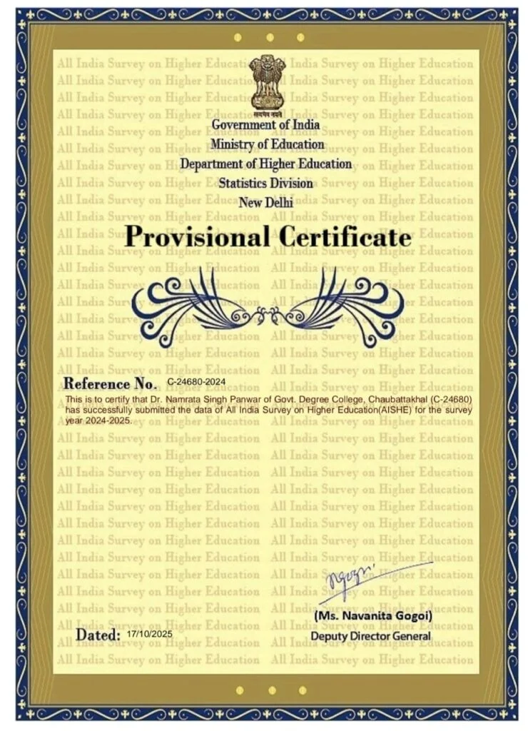 All India Survey on Higher Education (AISHE)-Certificate 2024-25